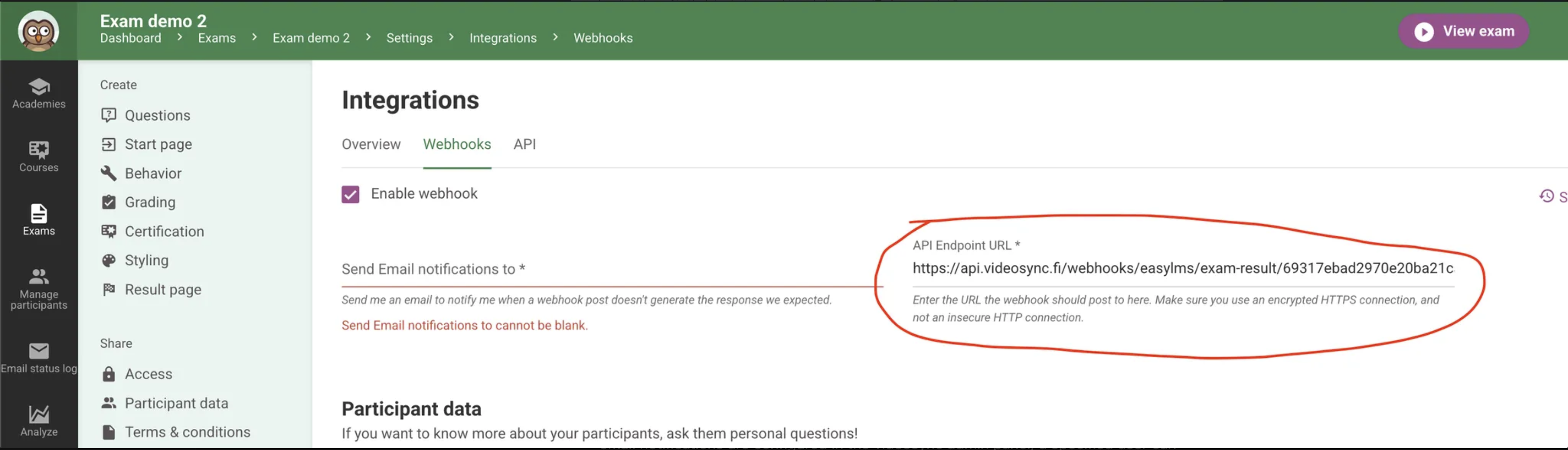 - Check each exam - Remember that the webhook must be configured for each exam separately